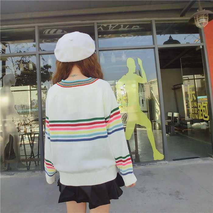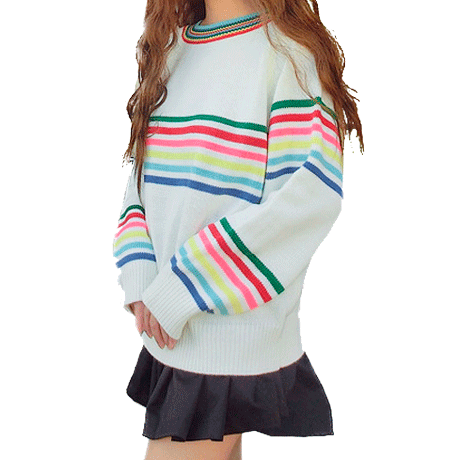 RAINBOW STRIPES WHITE KNIT VOLUME SWEATER