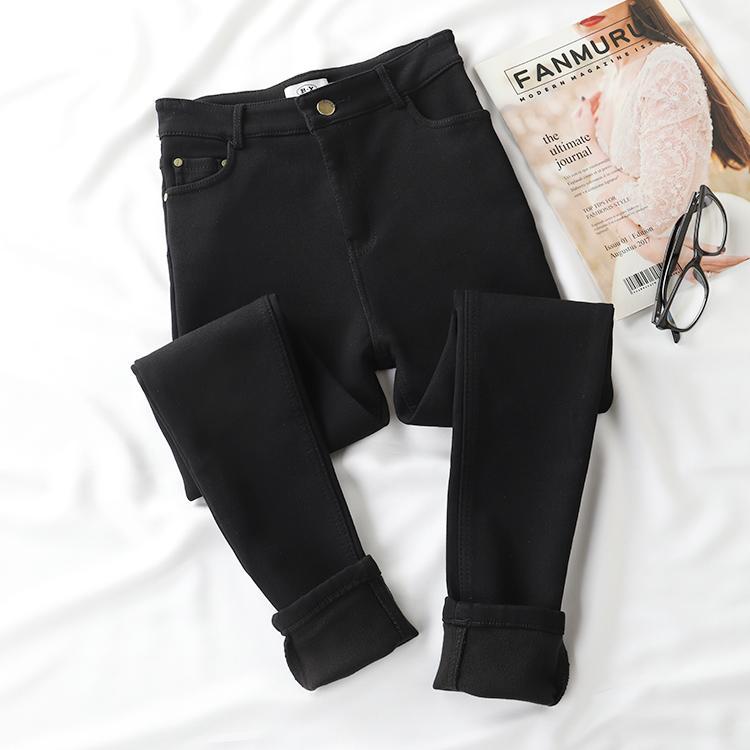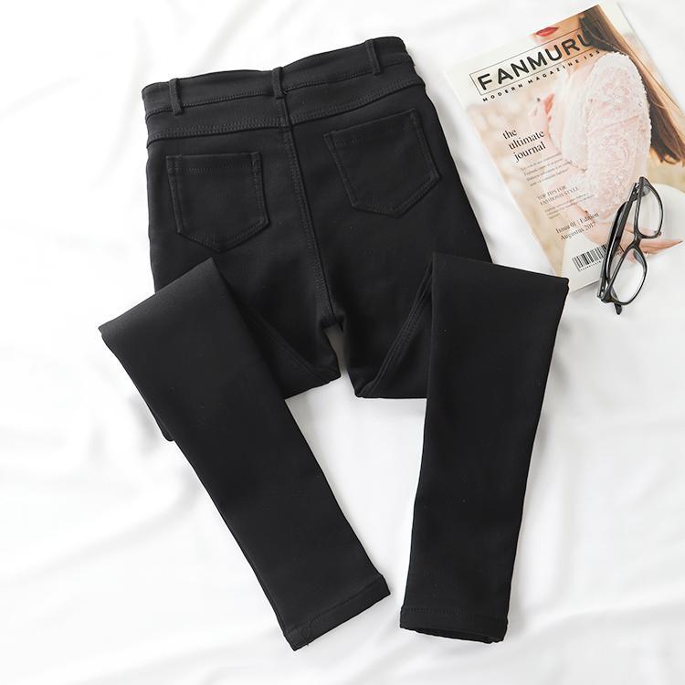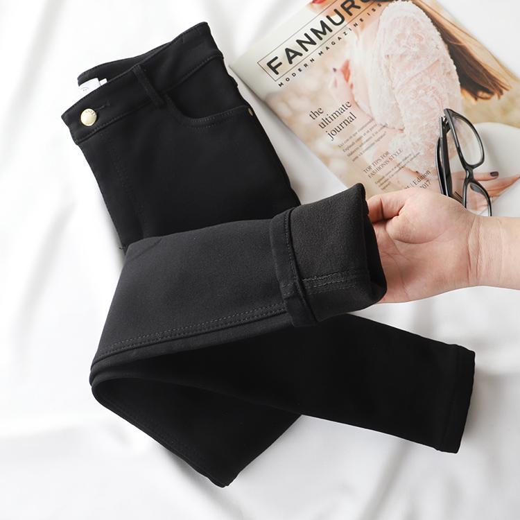 BLACK STRETCHY WARM VELVET INSIDE JEANS