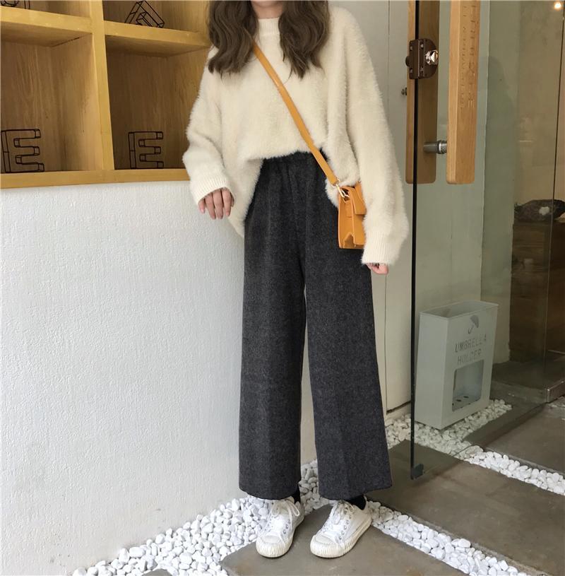 SOFT FLEECE RETRO WIDE HIGH WAIST PANTS