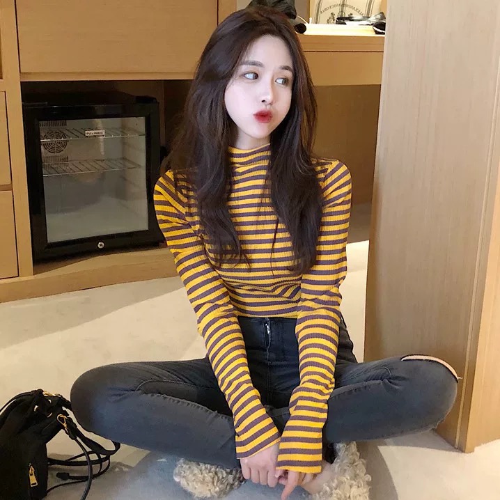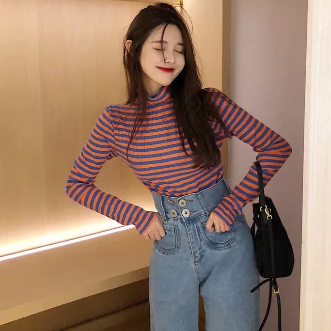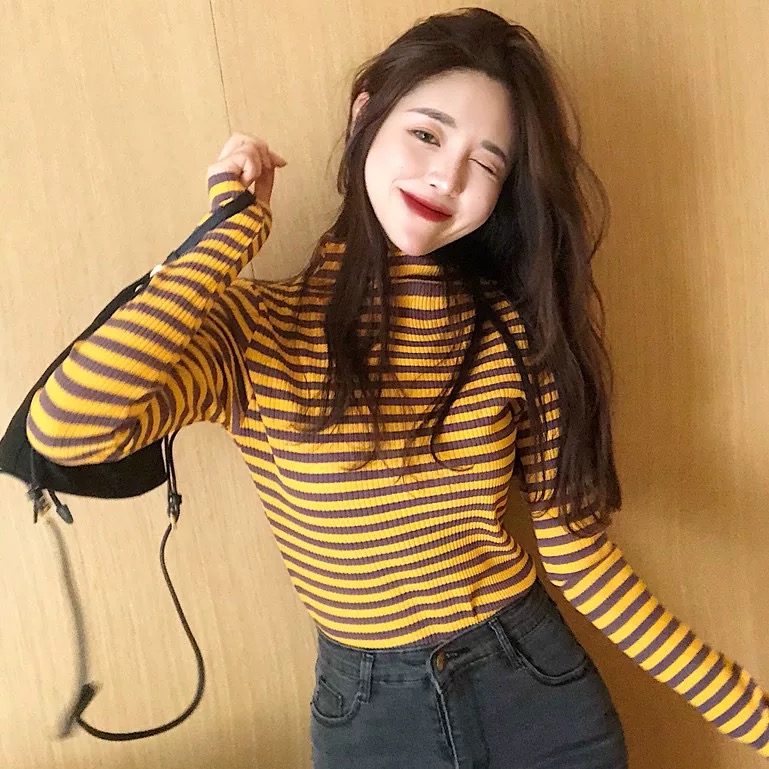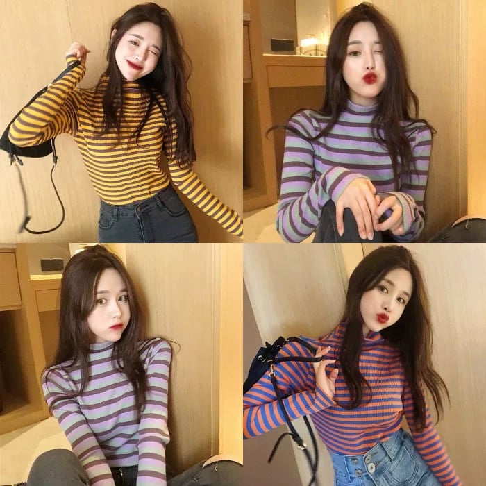 TURTLENECK LONG SLEEVE STRIPED TEE