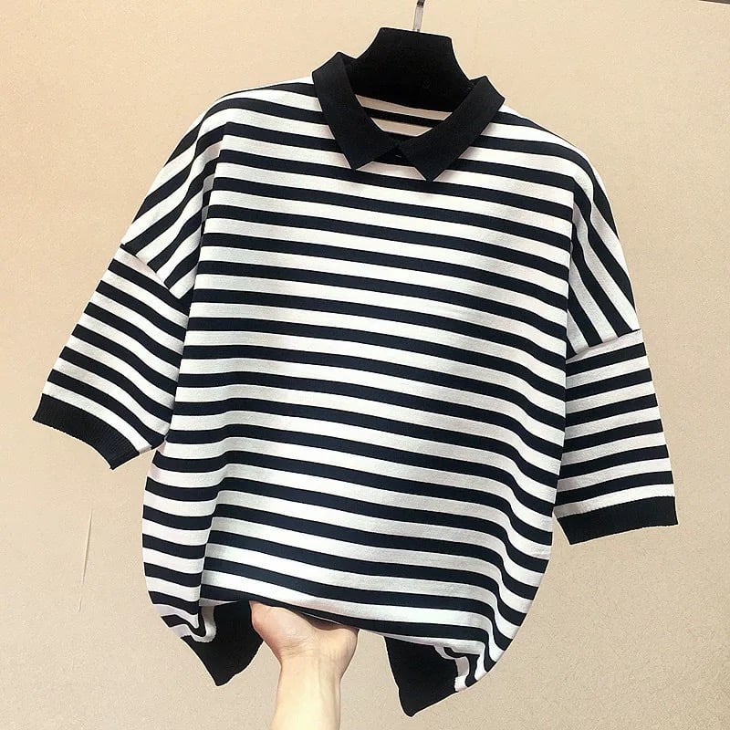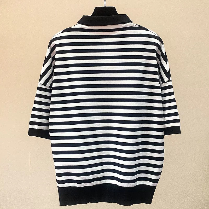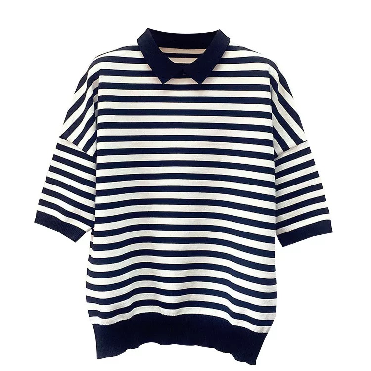 STRIPED CROPPED POLO TEE