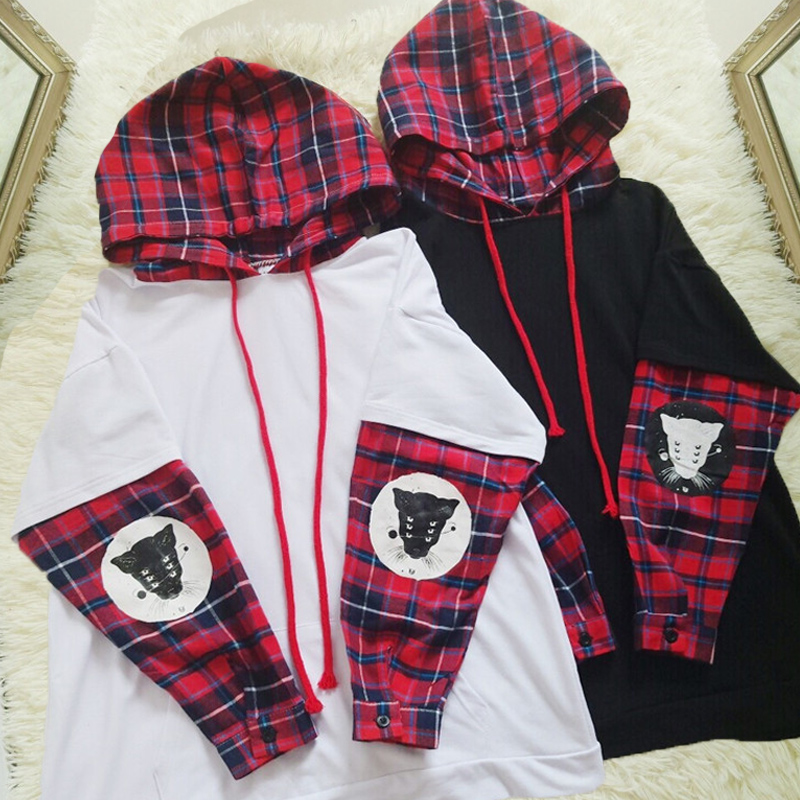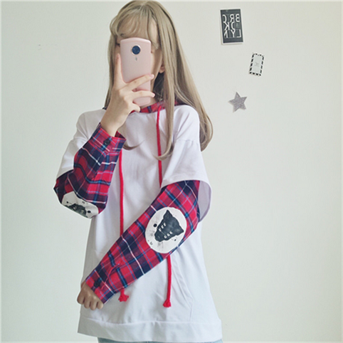 Harajuku Cat Fake Two Pieces Hoodie Sweater