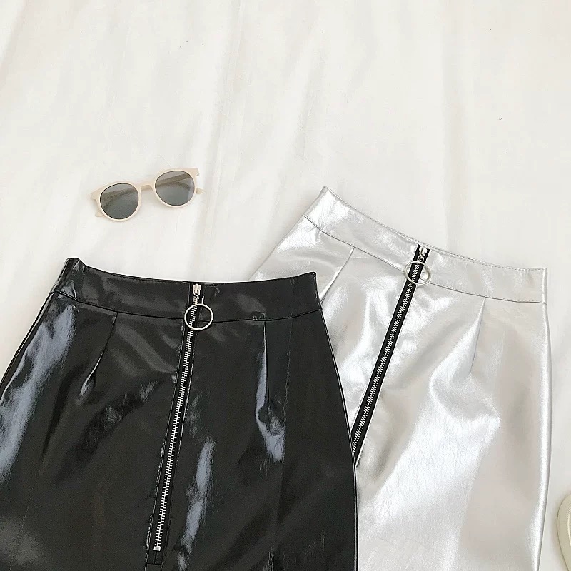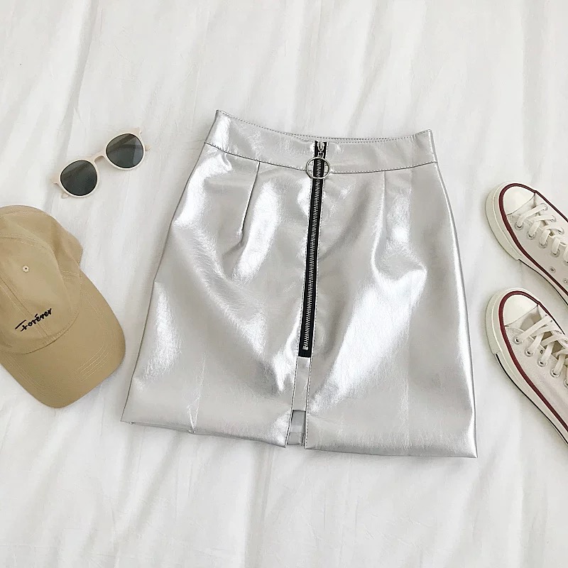 CYBER PUNK ZIPPER UP HOLOGRAPHIC SKIRT