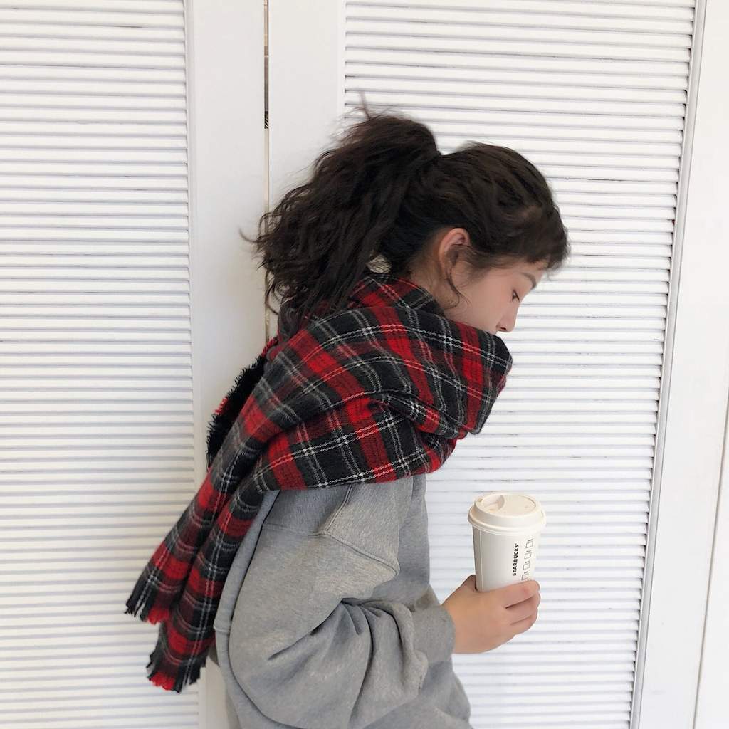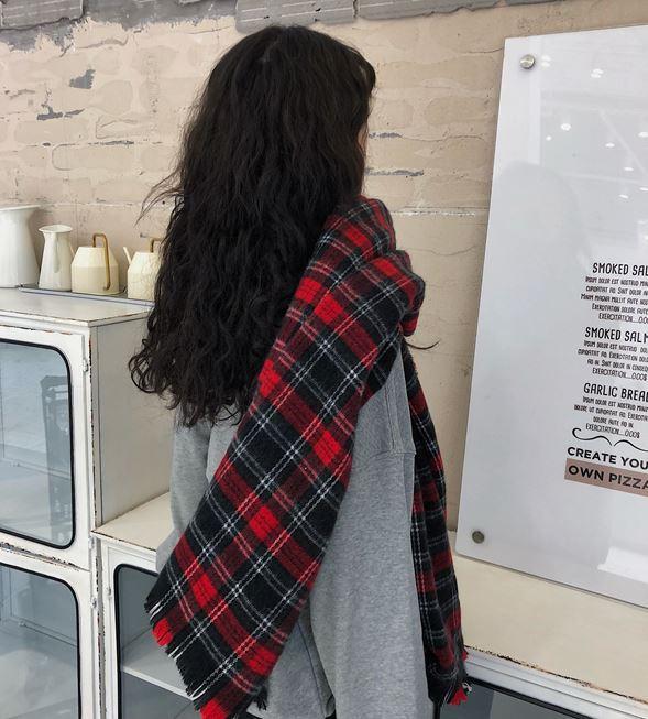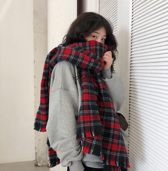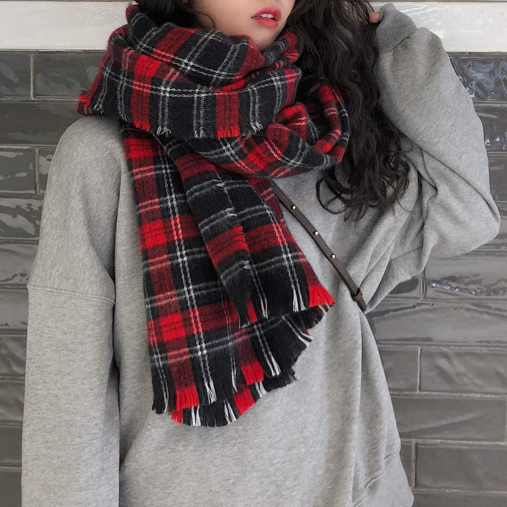 RED AND BLACK PLAID WARM FAUX CASHMERE AUTUMN WINTER SCARF