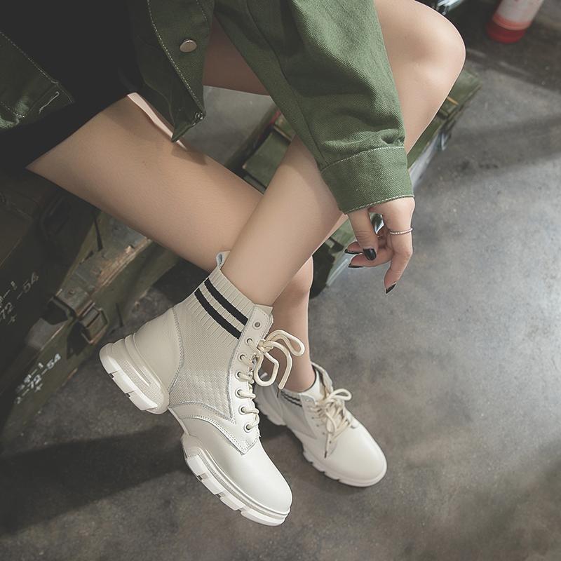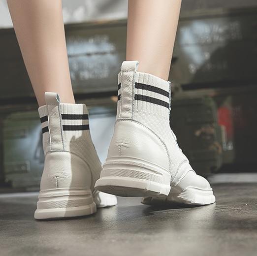 BLACK WHITE SIDE LINES ELASTIC ANKLE BOOTS