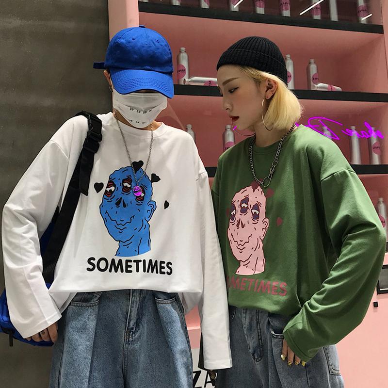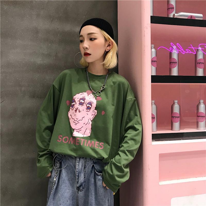 SOMETIMES RAD PRINT LONG SLEEVED GREEN WHITE SHIRT