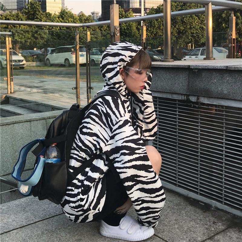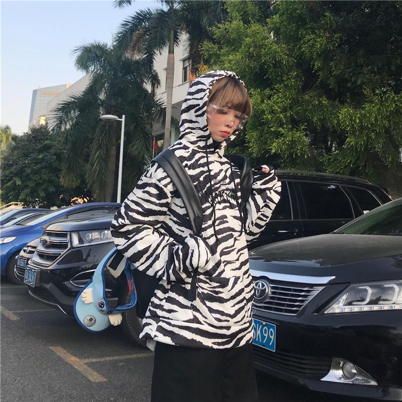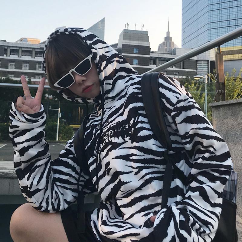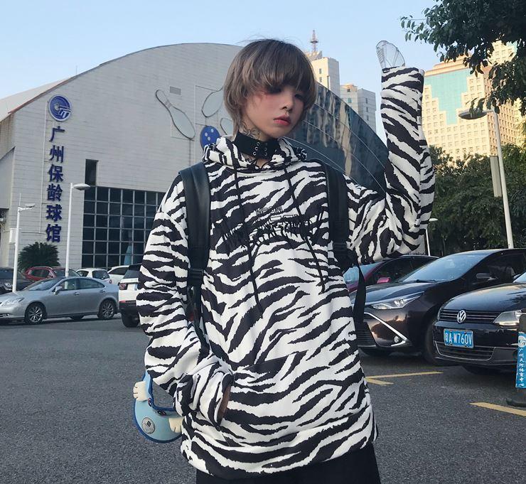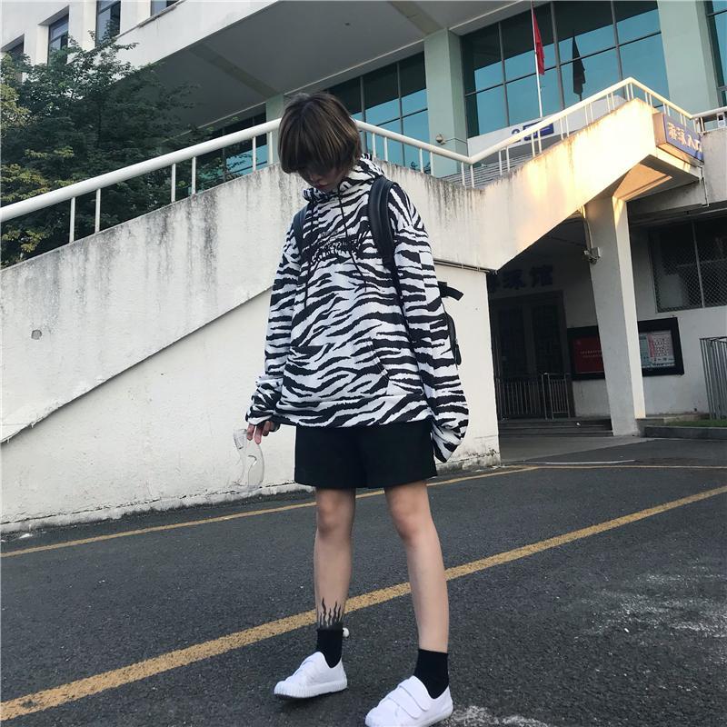 ZEBRA BLACK AND WHITE STRIPES LOOSE HOODED SWEATSHIRT