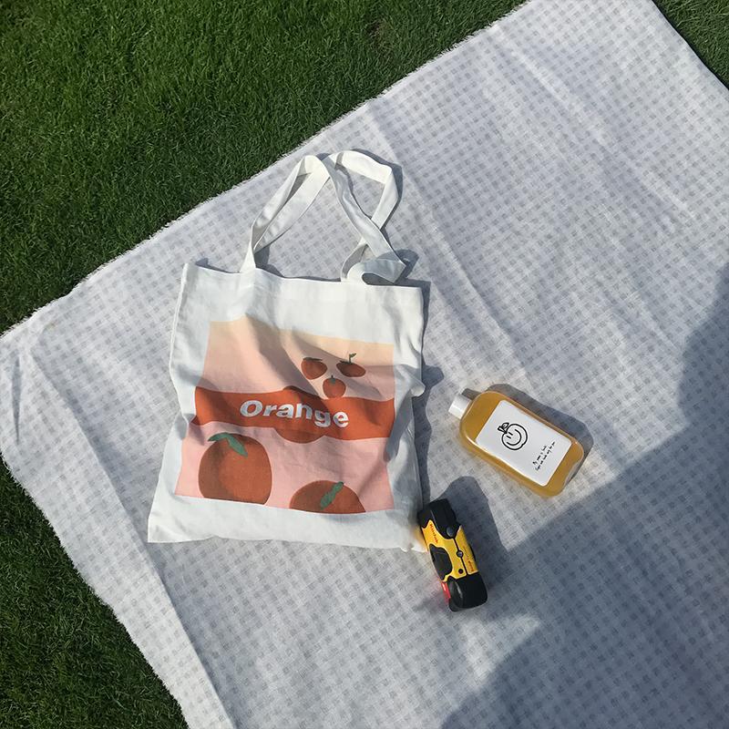 CANVAS ORANGE PRINT SHOPPING SHOULDER BAG
