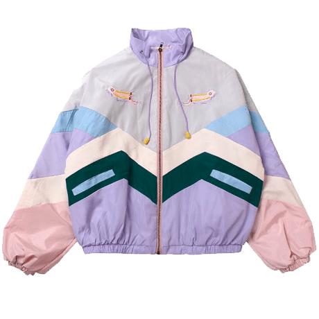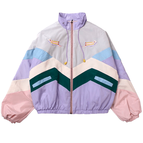 PASTEL COLORS PATCHES LINES HOOD RAIN COAT