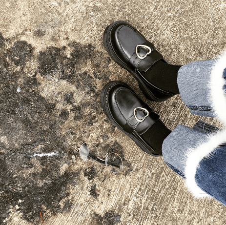 PLATFORM HEART BUCKLE BLACK LEATHER CLOSED BOOTS