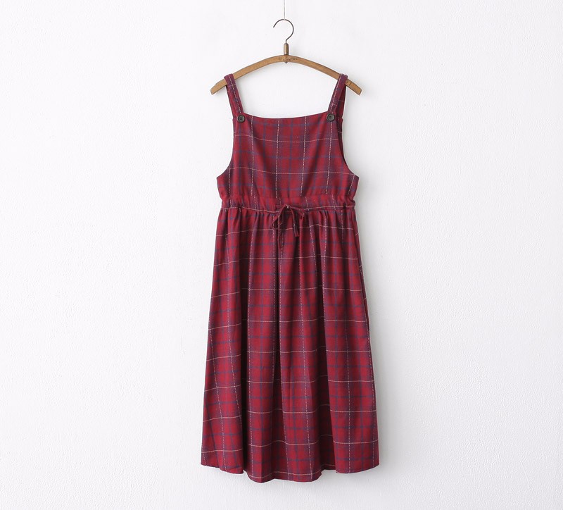 Cute Japanese Casual Pleated Plaid Strap Dress