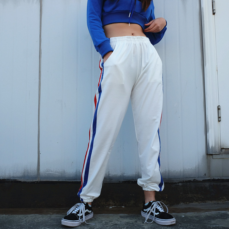Side Striped Jogger Pants In White