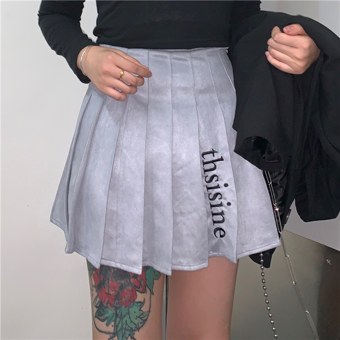 Suede Leather Pleated Skirt